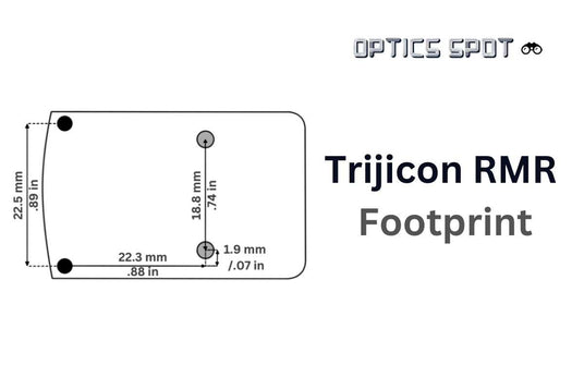 La huella RMR consiste en dos enchufes en la parte delantera y dos agujeros para tornillos en el medio de la mira.
