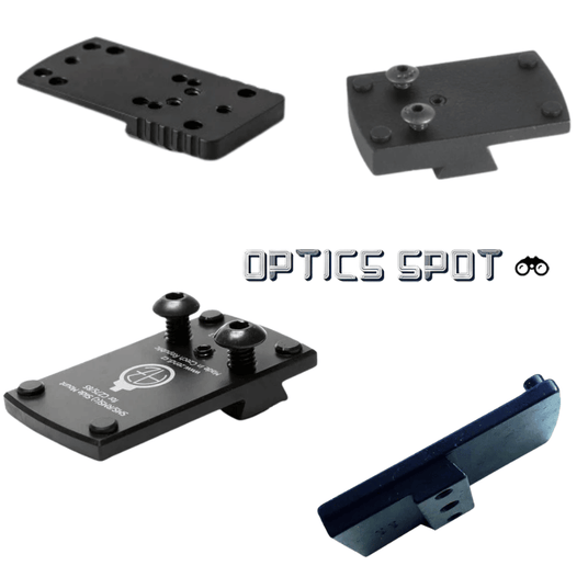Si tienes una pistola clásica, necesitas buscar un montura para visor de punto rojo que reemplace la mira trasera en el corte de cola de milano: montura para visor de punto rojo con huella Shield RMSc: