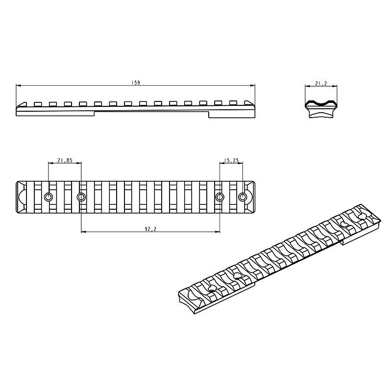Riel Picatinny [alcance base] para la instalación de anillas para visor con base Picatinny.