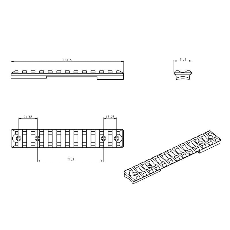 Riel Picatinny [base de alcance] para la instalación de anillas para visor con base Picatinny.