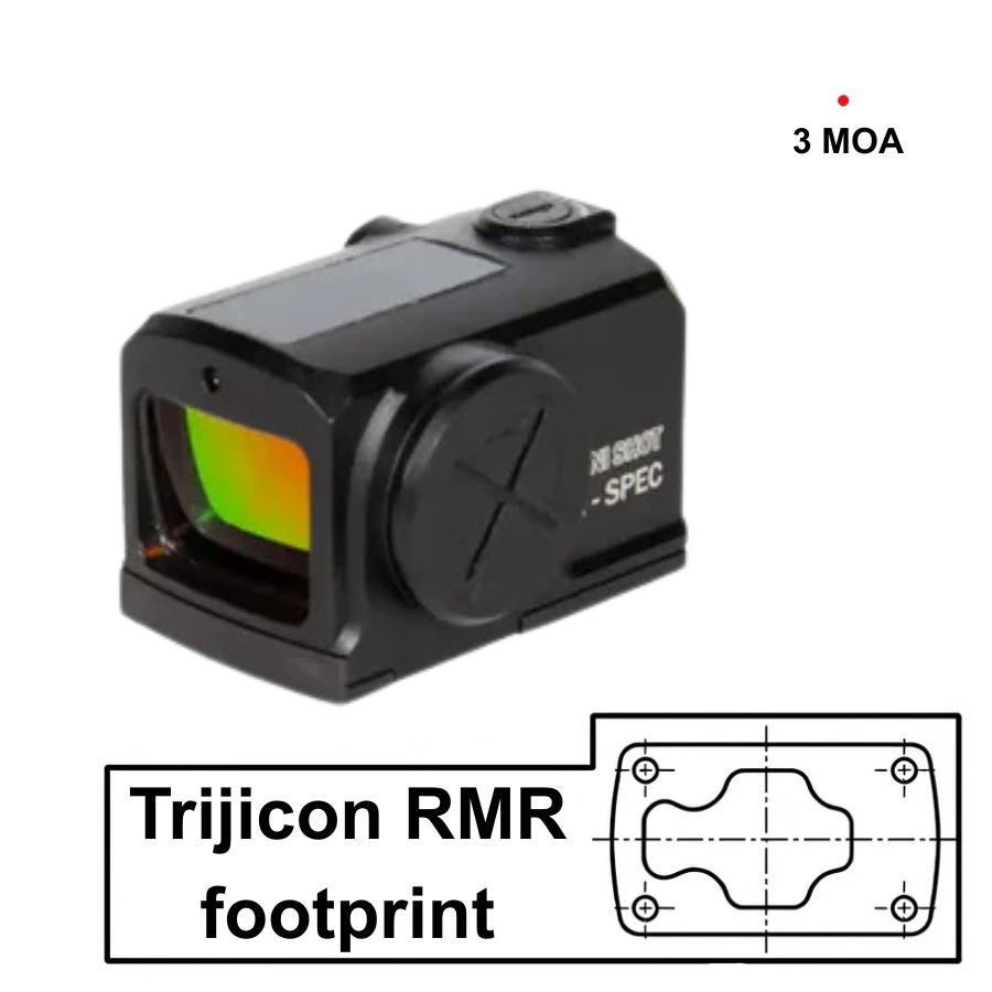 Esta mira de punto rojo utiliza el estándar de huella Trijicon RMR.