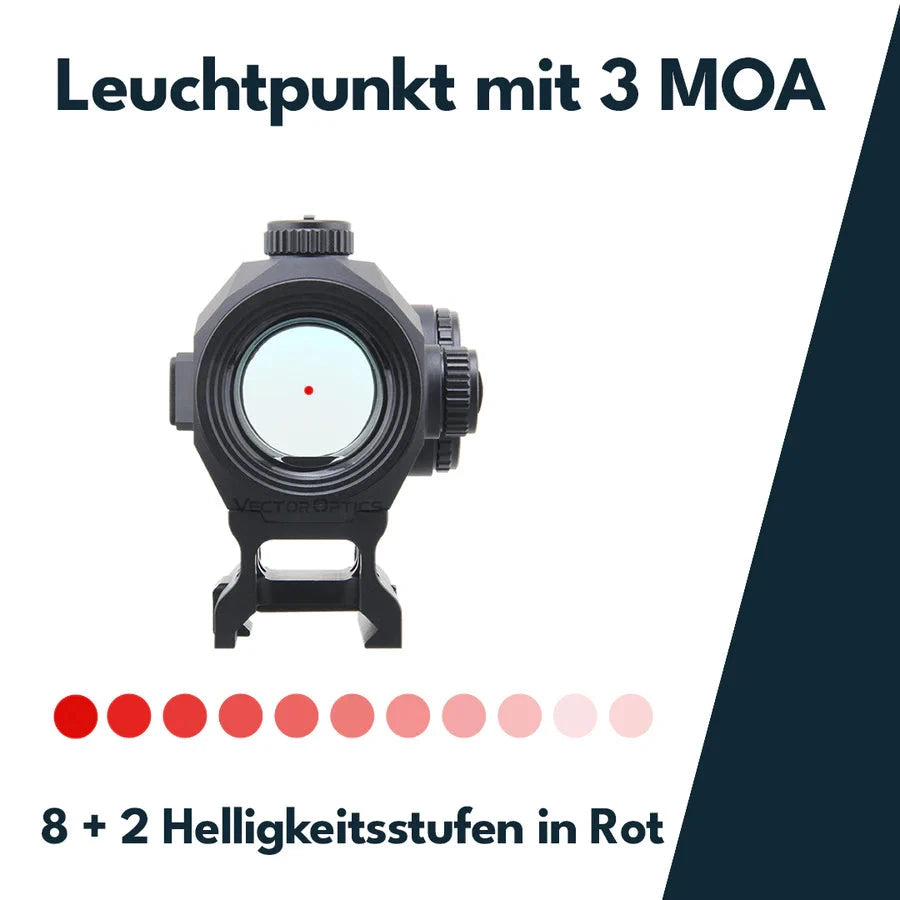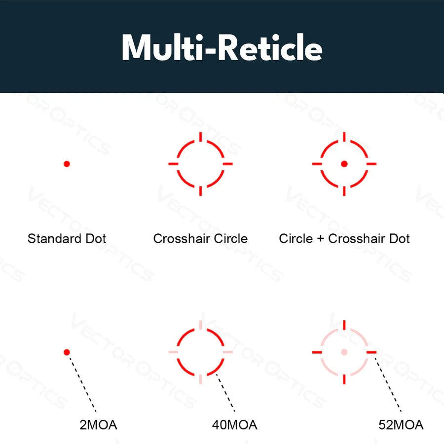 También ofrece tres retículas seleccionables, un sensor de movimiento (apagado automático tras 2 minutos de inactividad, y se enciende de nuevo tan pronto como se mueve la óptica), y un total de diez niveles de brillo (incluyendo 2 para visión nocturna).